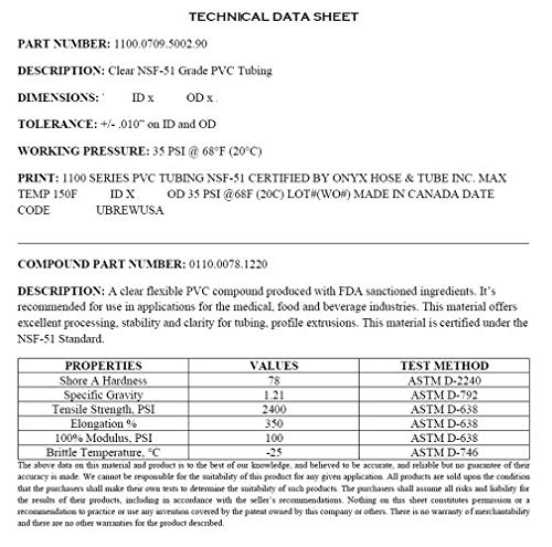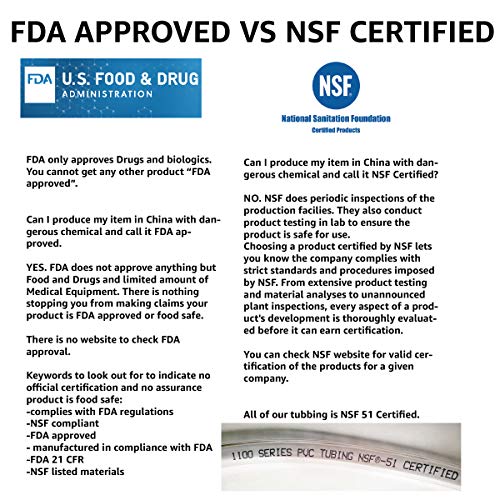 - NSF 51 (National Safety Foundation) Certified. Food safe. Certification number can be found on US.gov website. Made in Canada.BPA FREE AND NON-TOXIC. Ubrewusa polyvinyl tubings are safe to use and well suited for beverage and brewing, in the kitchen, some solid materials, as well as handling and dispensing foods. Can be used with most commercial barbed fittings and connectors. Make sure to always wash before use!