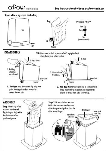 Details: Would you like aPour?Keeps 8 bottles of your wine fresh for up to 6 months.Reduces bottling, corking, labelling.Reusable, portable dispenser is engineered to last.The included Pressure Filler is designed to maximize volume and make filling a breeze.Kit Includes:1 x aPour Premium Wine Dispenser1 x Pressure Filler1 x pre-sanitized Oxygen Barrier Bag with Deluxe Dispensing Tap (replacement bags available in packs of 3)* Note: patent application filed