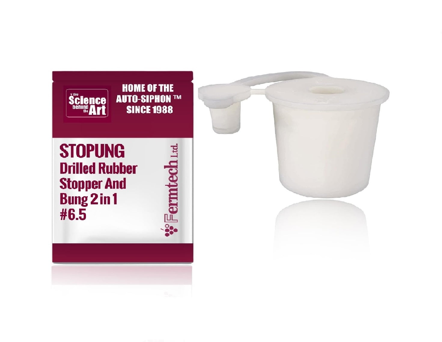 - Drilled Rubber Bung #6.5 and #6 Stopper 2 in 1. Premium Materials. All the rubber stoppers are made of food grade rubber, sturdy, durable, and long-lasting. Will fit 3, 5, 6, 6.5 and 1 Gallon Jugs.