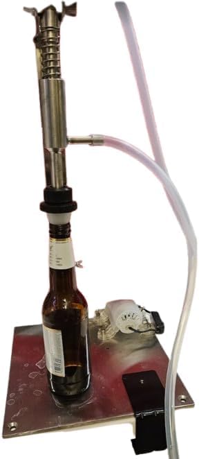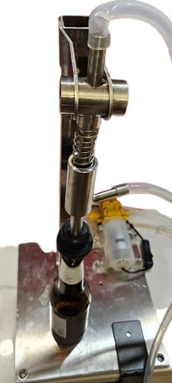 Fermtech Automatic Bottle Fller. For bottling wine, beer, kimbucha, juices, etc. Fill 5 Bottles per Minute. Stainless Steel Design Made in Canada Foods Safe Tubing.