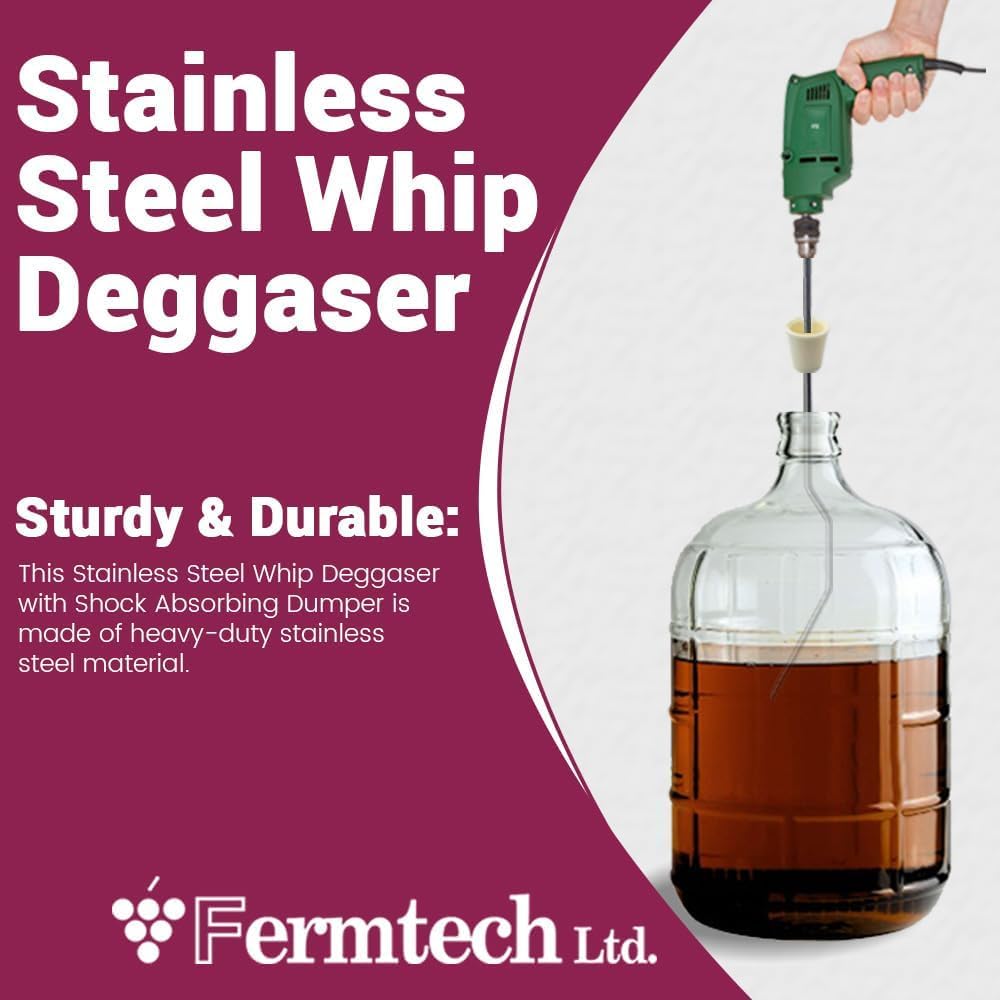 - Our propritary bent arm that is shared with our plastic Whip will increae agitation over competing products for faster and cleaner degassing and mixing of your wine beer mead kombucha.