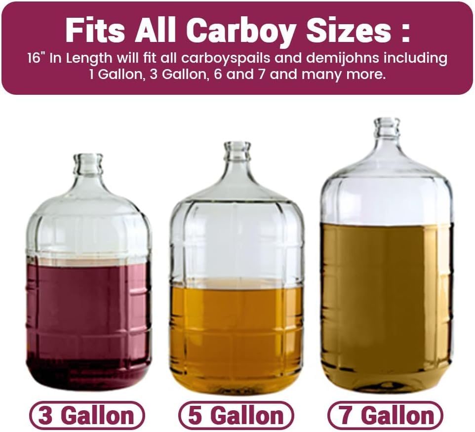 - 16" In Length will fit all carboyspails and demijohns including 1 Gallon, 3 Gallon, 6 and 7 and many more.