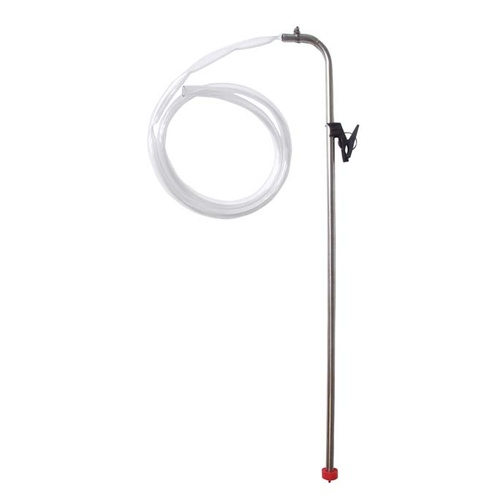 26" x 3/8" OD stainless racking cane, 5 feet of tubing, racking clip and a hose clamp. Perfect for siphoning wine from one glass container to another glass container. Great for carboys and demi-johns.